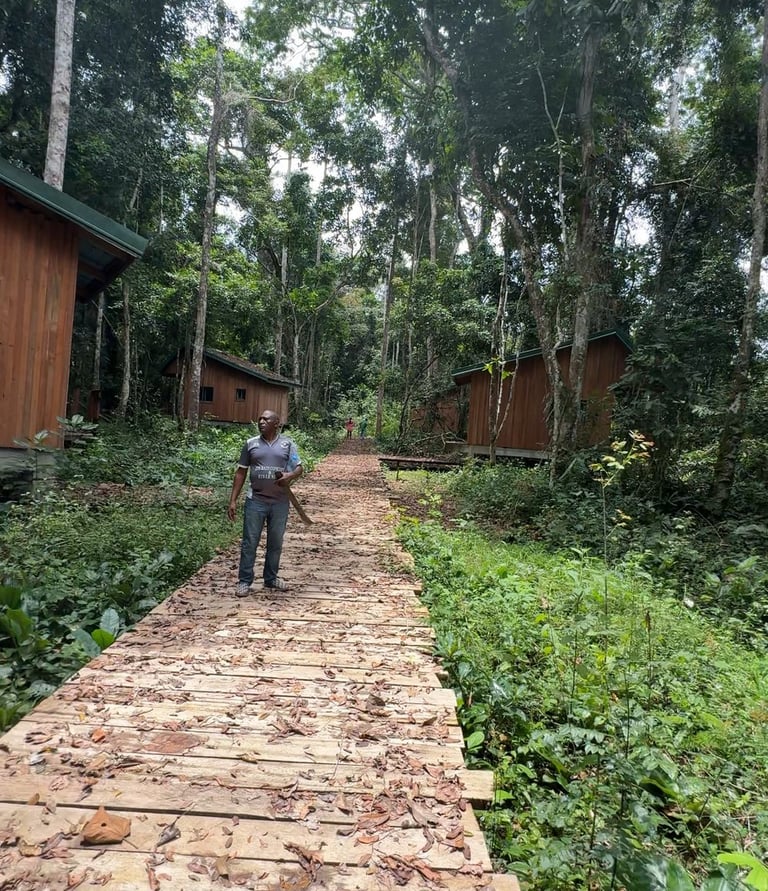 Nous sommes originaires de la tribu ESSANGÔM, dans le canton de Mintom, où se trouve la grande forêt bordée par le fleuve Dja. Depuis des années, nous entreprenons de valoriser les essences tropicales que possède cette forêt, en transformant de manière responsable les arbres qui s’y trouvent.