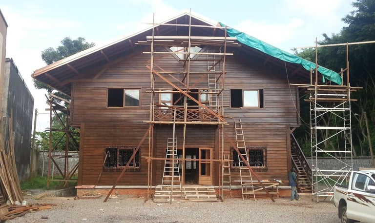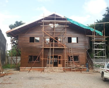 Temps des travaux 2010-2026, réalisé avec les essences de bois suivantes : Padouk, Difou, Iroko, Movingui, Bilinga, Okan, Sapelli, Ayous, Frake,Ibe, Bibolo, Landa, Wengue, Moabi, Makore.